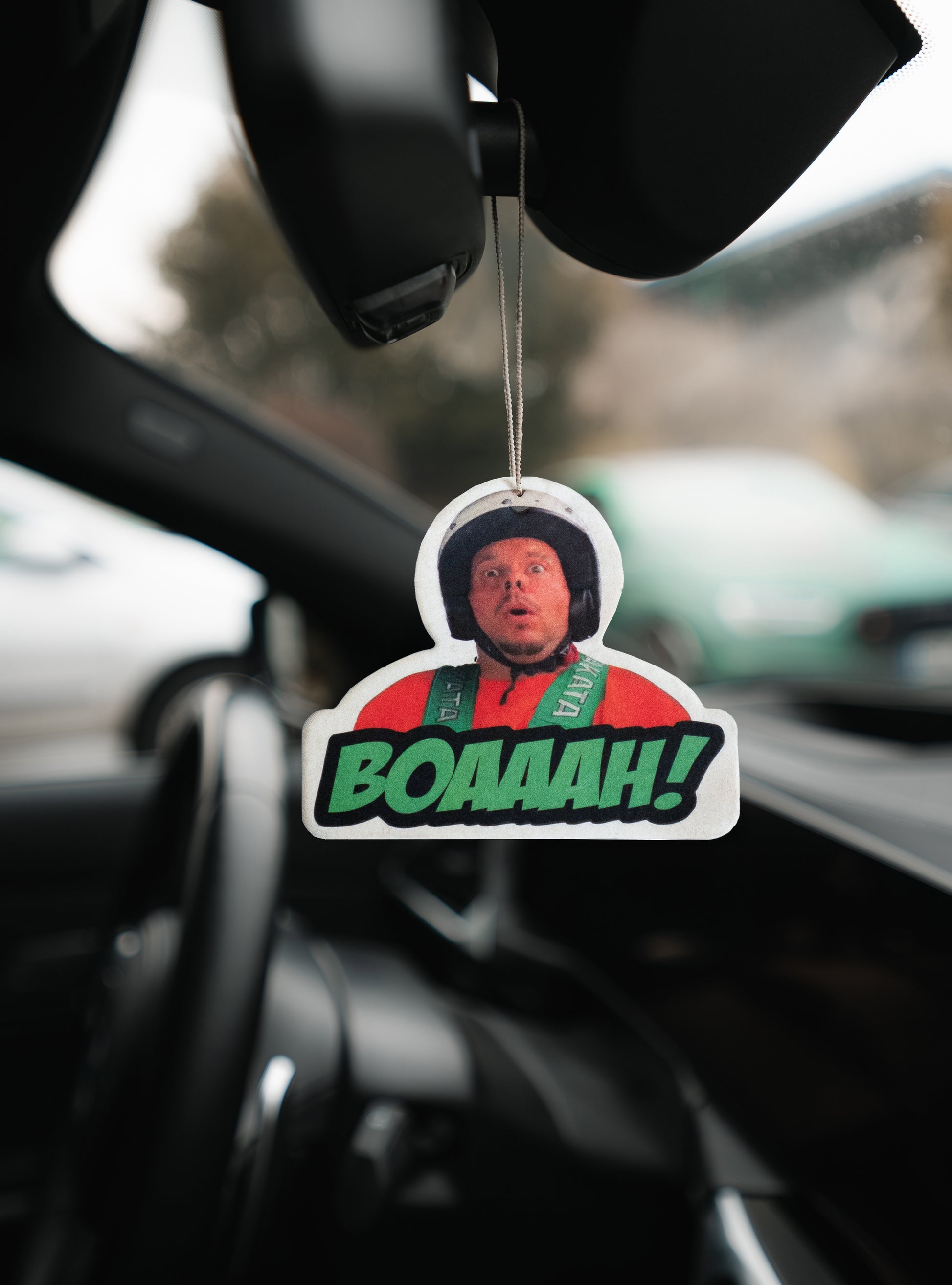 Der „Boaaah“-Duftbaum bringt frischen Wind ins Cockpit, und ein Gesichtsausdruck, den jeder kennt, der schon mal ordentlich Boost gespürt hat. Mit legendärem Meme-Vibe, Rennanzug und Kultfaktor für Rückspiegel mit Humor.